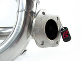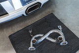 The system replaces the enormous and heavy factory rear muffler with a tubular straight through cross over design which retains all the bosses for the sensor probes.